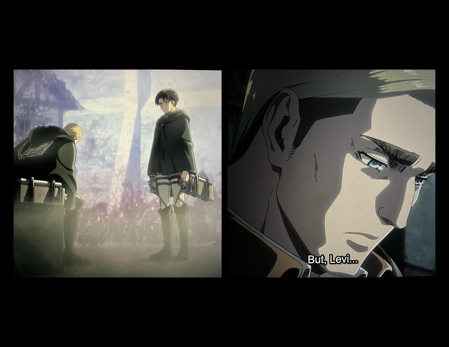 This is the ending of Levi and Erwin’s arc together. Coming to a full circle moment from the time Levi decided that the only thing he can do is move forward and not regret any choice he has made in the past.