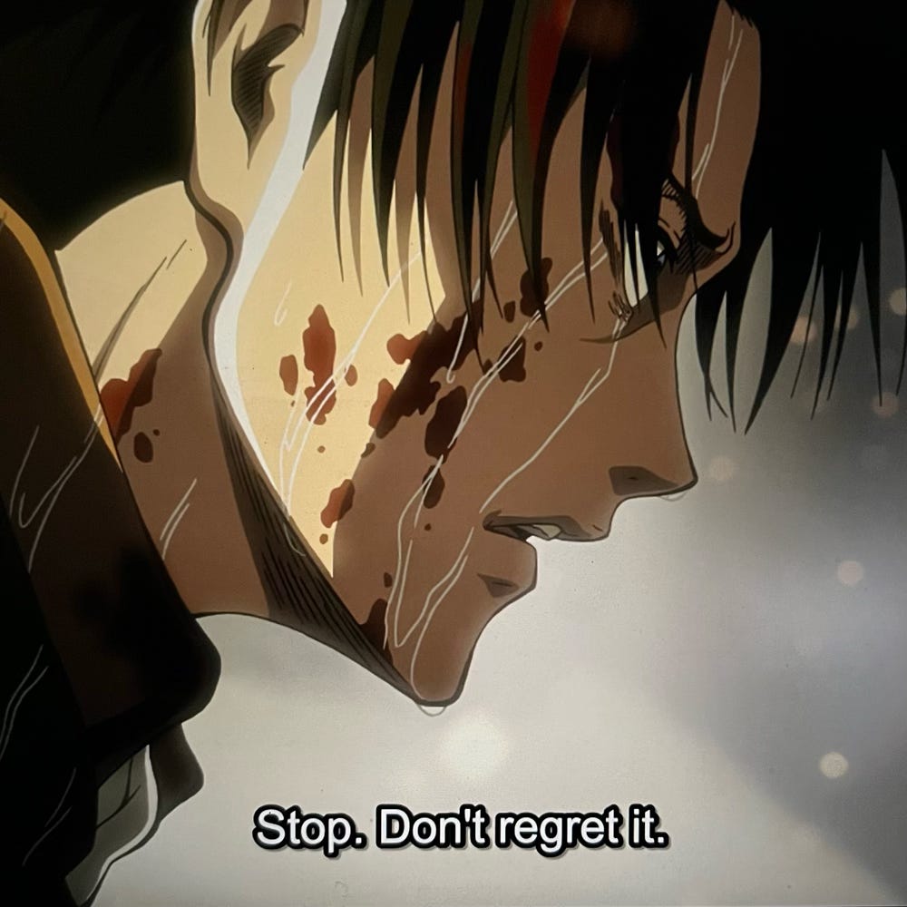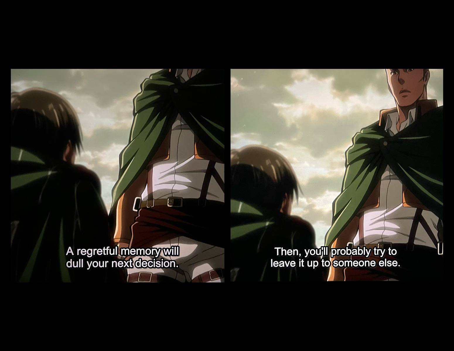 At the end of the second part of Levi’s OVA, we watch him discover that his only two friends are dead, a consequence of a decision he made.