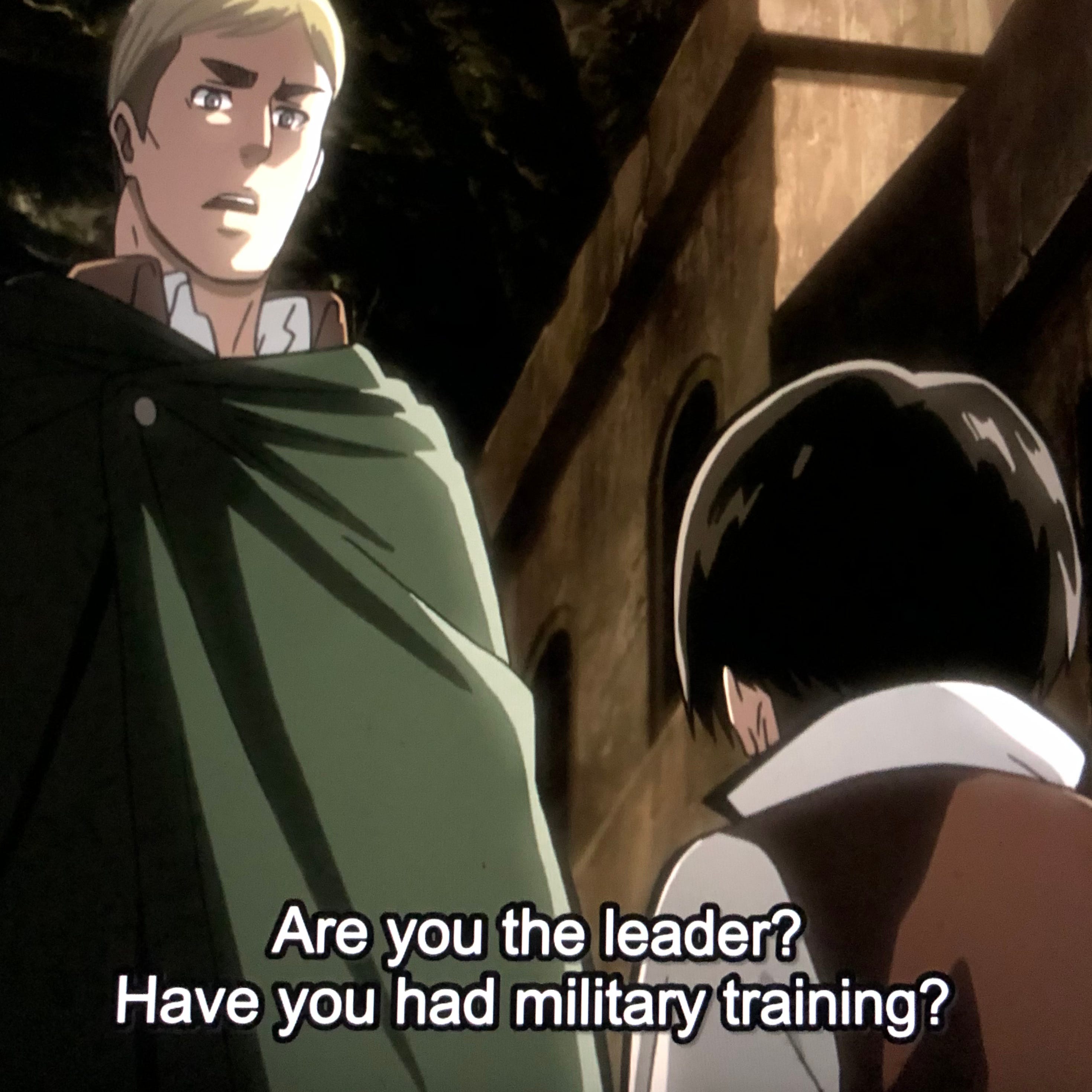 On my first watch I fell in love with Levi as a character and as his arc throughout the show. I think Hajime Isayama wrote him sooo well and gave his character many layers, some that served as punchline entertainment and some that go way deeper.